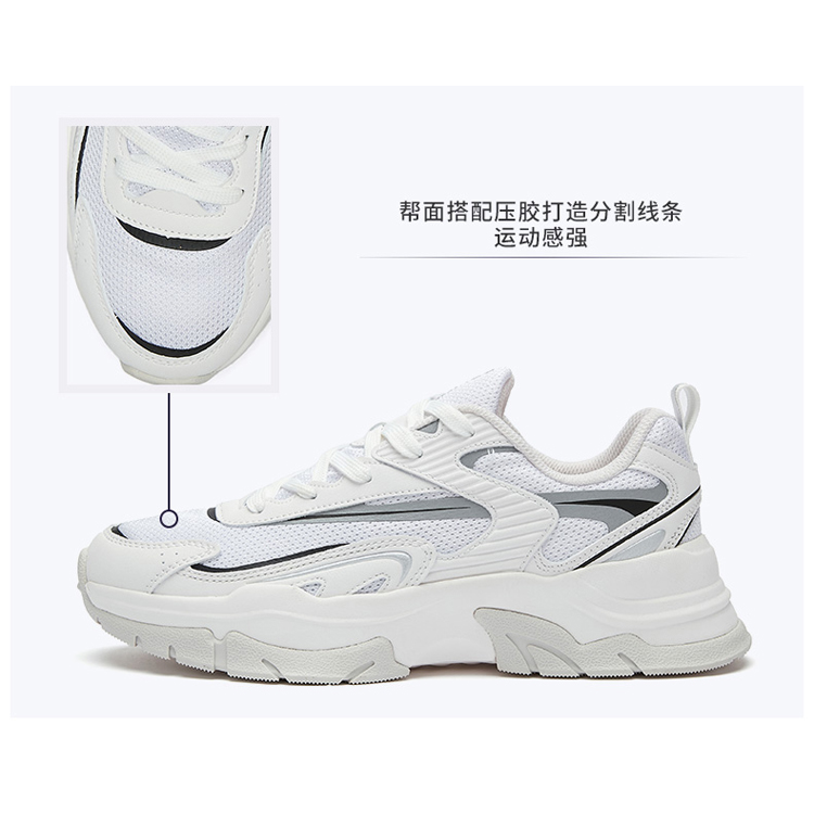 This is a simple running shoe and one of the hot-selling products of JIAN ER Shoes Company.This is a sporty casual shoe with a fashion appearance.Adapt to multi-scene dressing, commuting, shopping, home, fitness.The upper is made of leather and mesh material, and the upper is matched with glue to create a split line, which has a strong sense of movement and a good support effect on the instep. The popular appearance and versatile colors can be matched with various styles of clothing.The midsole is made of MD material, which is elastic and soft in texture. The outsole is made of rubber material, which has the advantages of non-slip, wear-resistant and durable.The sole has a certain thickness, which can increase the height and look better.This style is available in men's and women's styles, and the sales effect is very good. The manager recommends styles.If you want to customize this style, you can modify the material, texture, shoe type, and logo of the shoes according to your needs. You can add your logo to the tongue/body/insole/sole of the shoe.