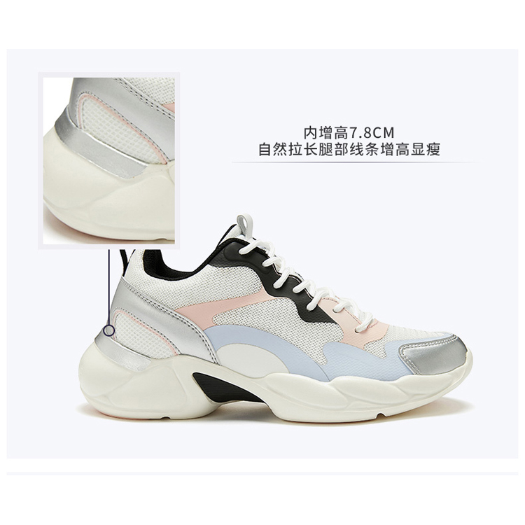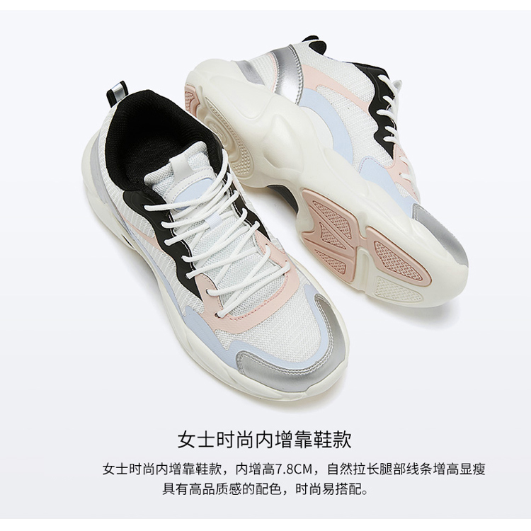 This is a stylish thick-sole sports running shoes, JIAN ER Shoes Company recommended for spring and autumn, and one of the sports styles that girls like.Women's fashion inner height increased shoes, inner height increased by 7.8 cm naturally elongated leg lines increased and thinner, with high-quality color matching, fashionable and easy to match.The upper is made of cloth with rubber strips, which is breathable and comfortable. The toe and heel of the shoe are made of leather material, which has a good supporting effect.The tongue and heel pull up design is easy to put on and take off.Round solid color shoelace design, classic style.The midsole of the shoe is made of MD material, which is elastic, comfortable and soft. The outsole of the shoe is made of rubber material, which is non-slip and wear-resistant.These shoes are suitable for work, school, sports, shopping, and match with various scenes and various costumes.